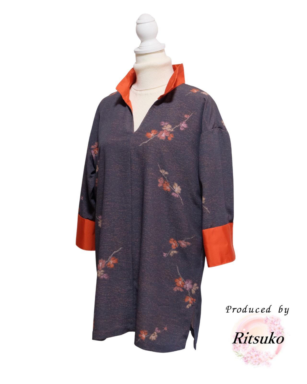 こちらは、着物地から仕立てた一点物の着物服です。
